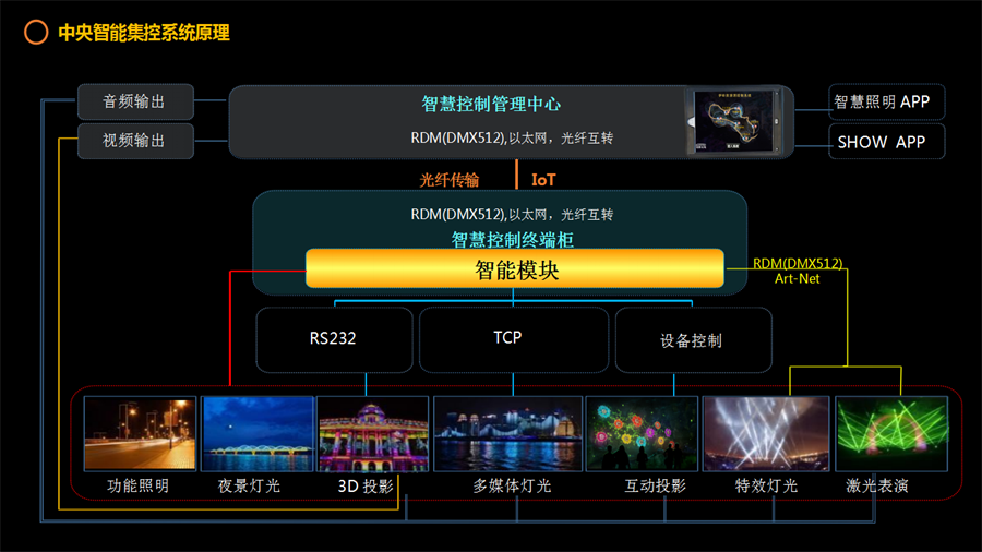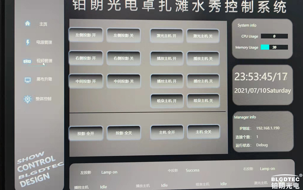 控制系统使用一种称为MxM(ManagerxobiectModules)的外挂模组去控制各项设备,连接型态包括串行口、Midi、时间码、远红外线、