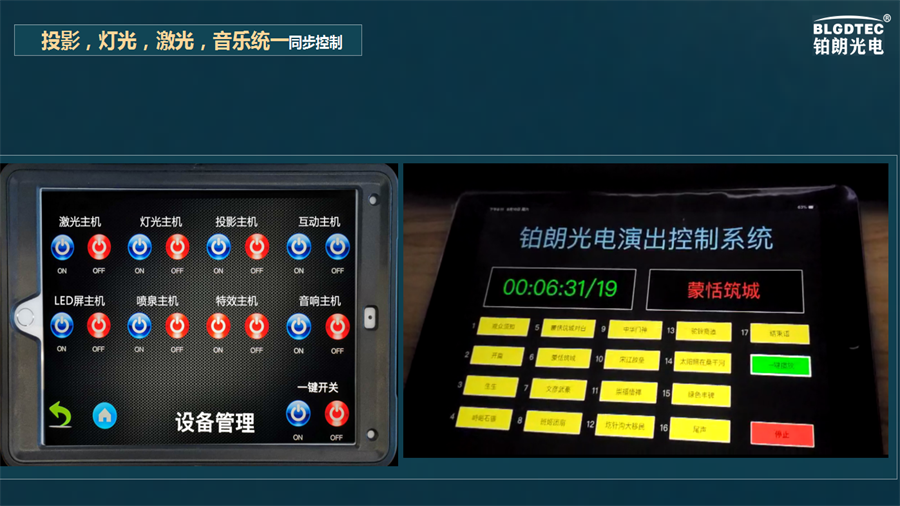 过程更简单更有效率。时间轴甚至可以录制外部的DMX、MIDI或是申口讯号来同步播放。您可以经由触摸屏和一般I/O的输入或者